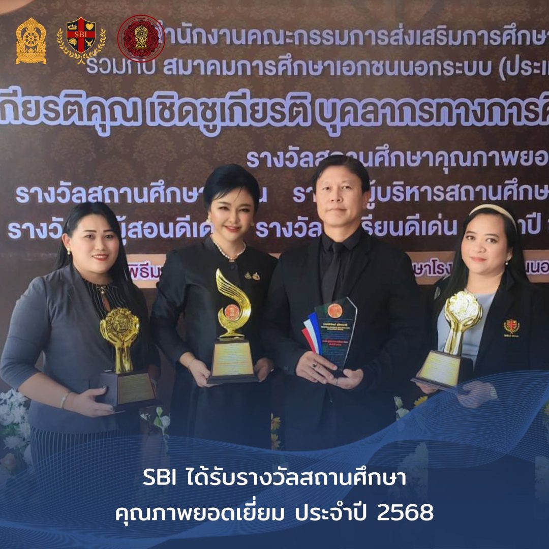 สถาบัน SBI ได้รับรางวัลสถานศึกษาคุณภาพยอดเยี่ยม ประจำปี 2568 เมื่อวันที่ 1 พฤศจิกายน พ.ศ. 2568 ณ หอประชุมคุรุสภา กระทรวงศึกษาธิการ สถาบัน Smile Brain Potential and Languages development School , Smile Brain International Program ได้รับ “รางวัลสถานศึกษาคุณภาพยอดเยี่ยม”