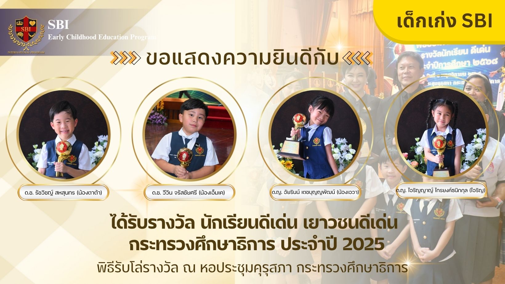 ขอแสดงความยินดีกับเด็กเก่ง SBI ที่ได้รับ “รางวัลนักเรียนดีเด่น เยาวชนดีเด่น กระทรวงศึกษาธิการ ประจำปี 2025"