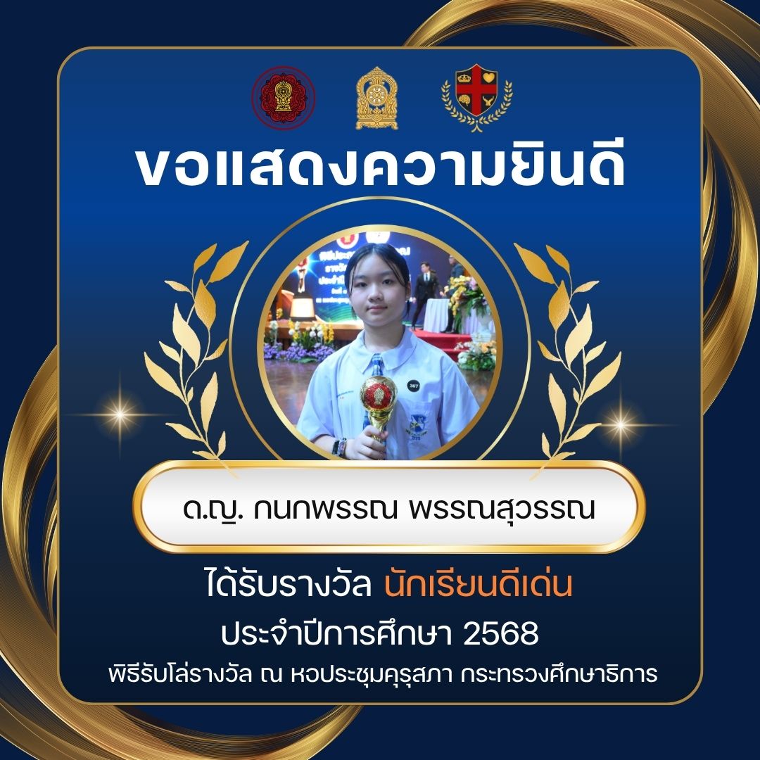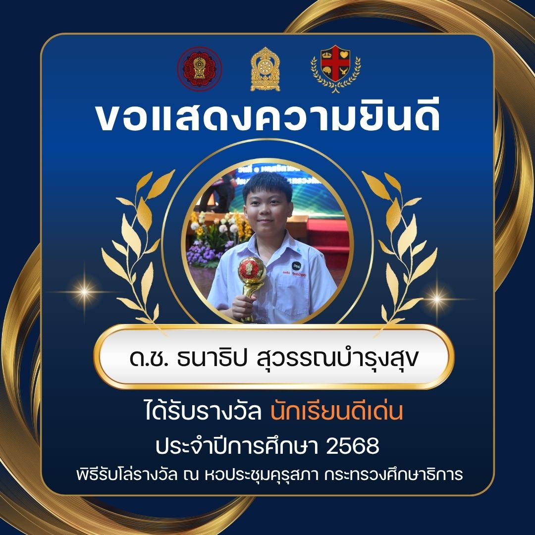 ที่ได้รับ “รางวัลนักเรียนดีเด่น เยาวชนดีเด่น กระทรวงศึกษาธิการ ประจำปี 2025” ขอชื่นชมในความตั้งใจ ความพยายาม และความกล้าแสดงออกของเด็กๆ ทุกคน ขอให้เติบโตอย่างงดงาม เป็นแบบอย่างที่ดี และสร้างแรงบันดาลใจให้กับเพื่อนๆ ต่อไป