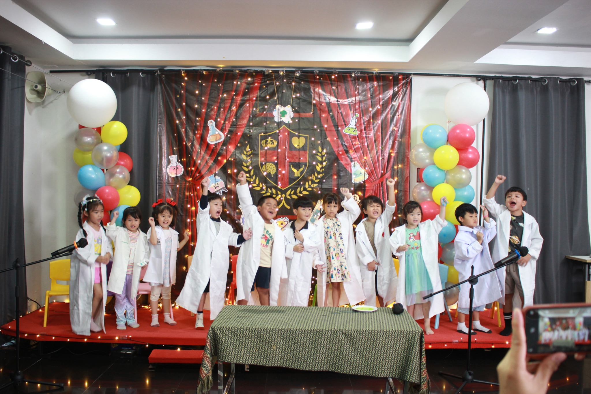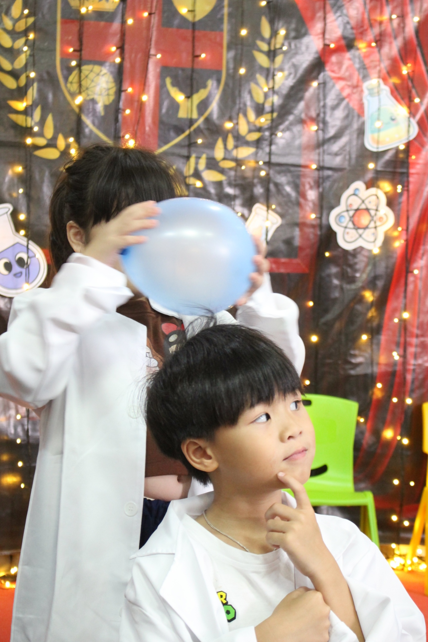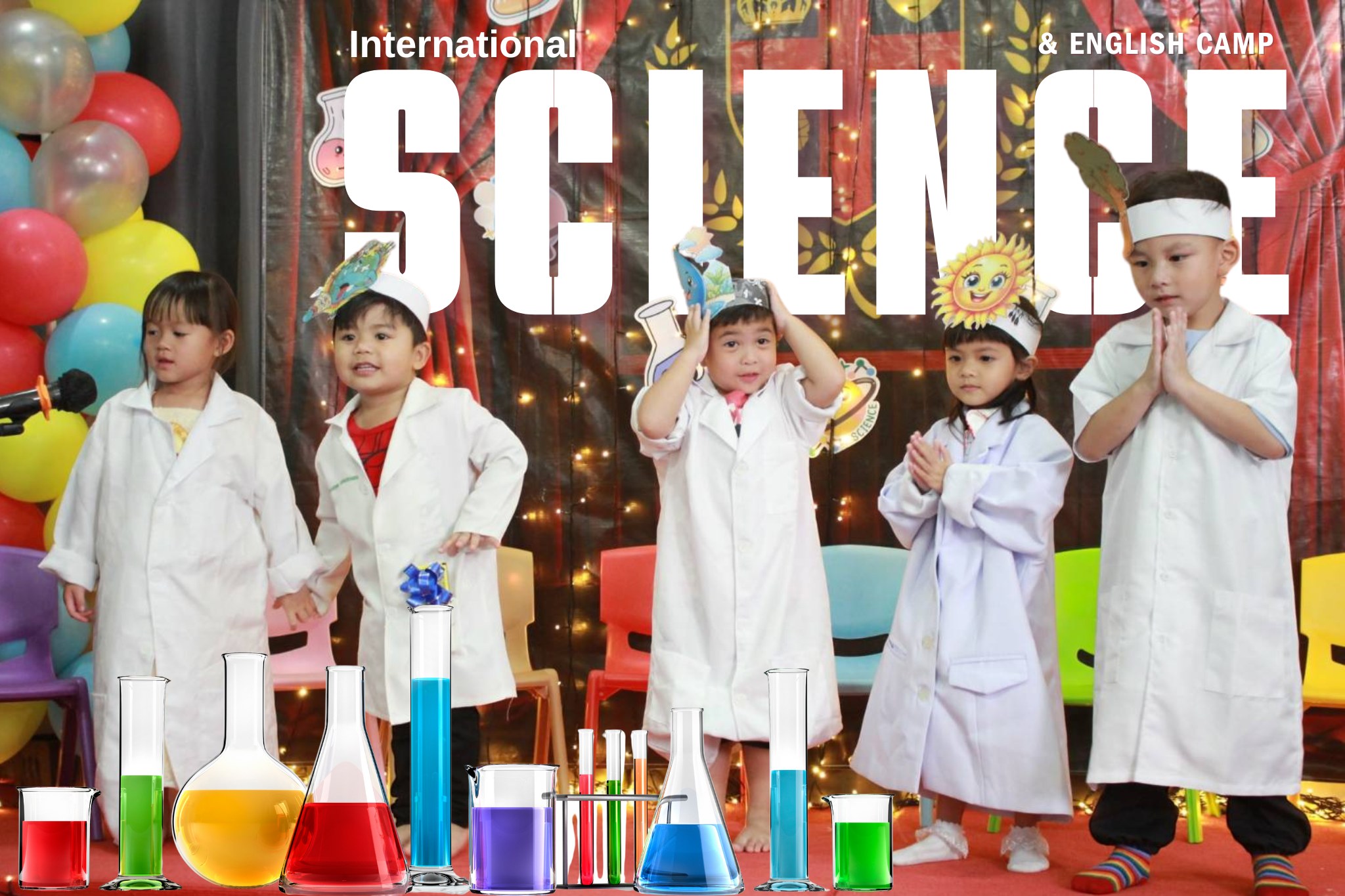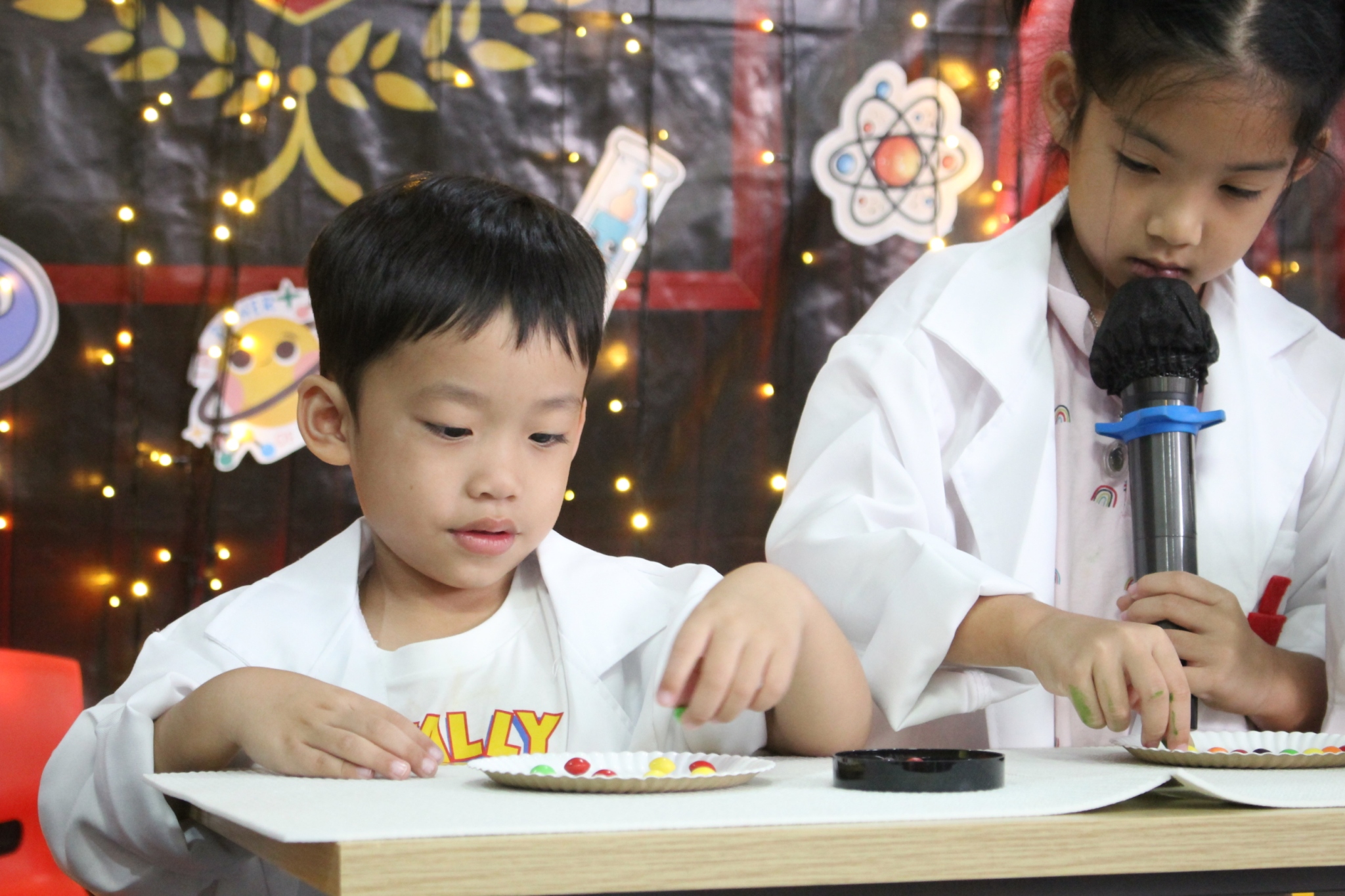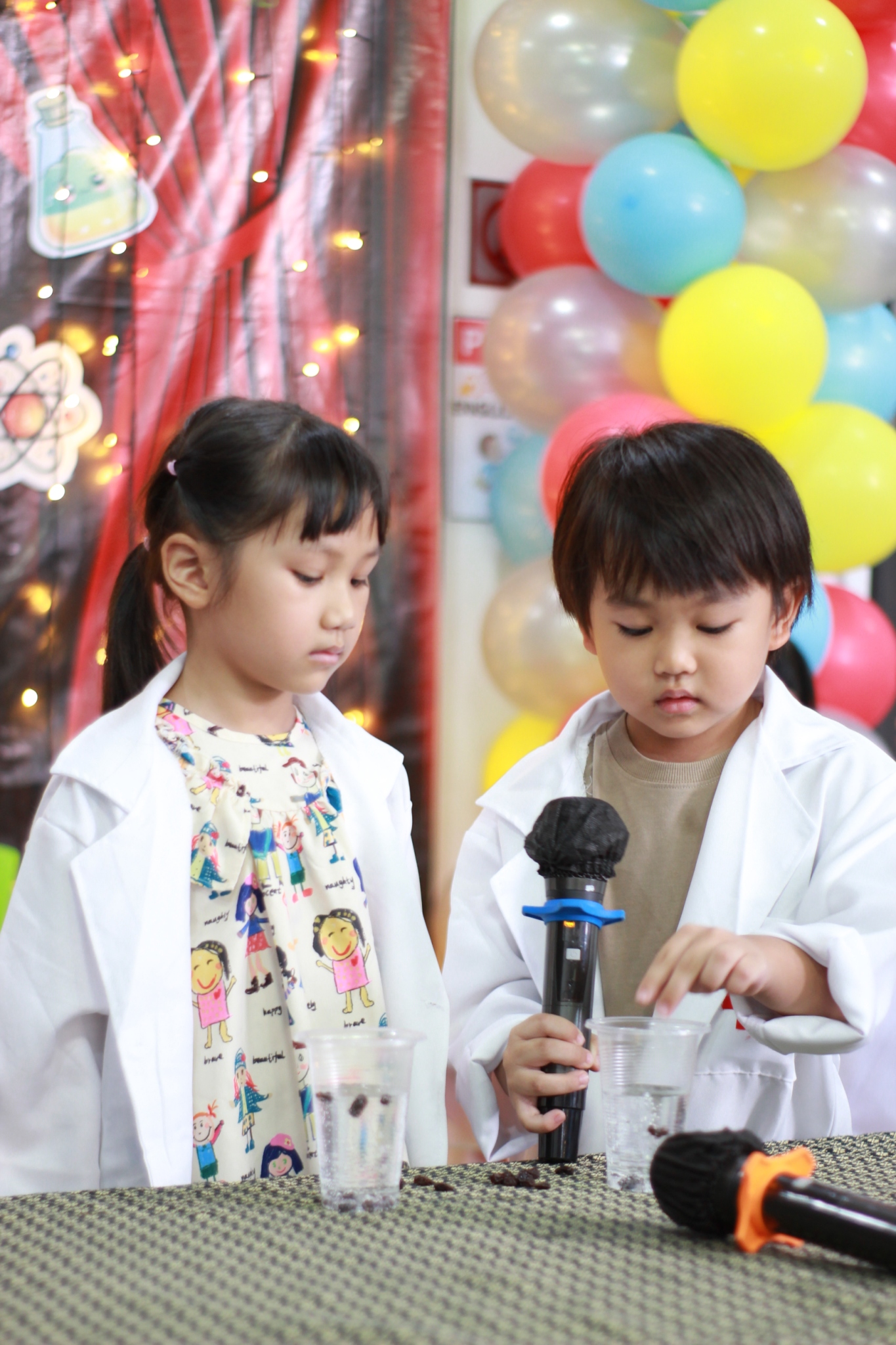 เหล่าเด็กๆ สวมเสื้อกาวน์ ใส่แว่นนักวิทยาศาสตร์เหมือนมืออาชีพตัวจิ๋ว พอทุกคนได้รวมตัวกันรทดลอง เสียงหัวเราะก็ดังขึ้นไม่หยุด