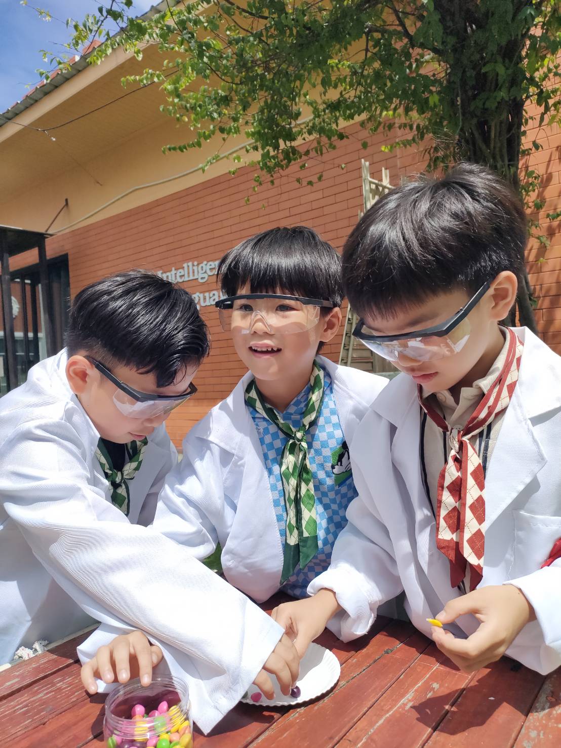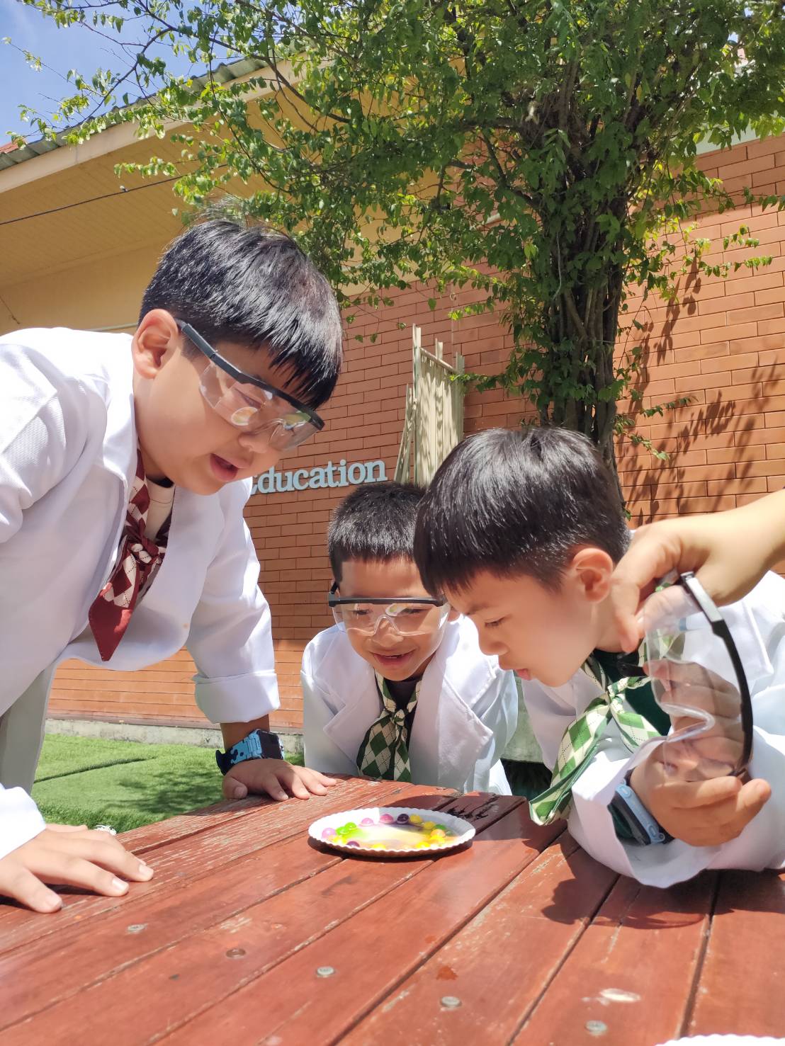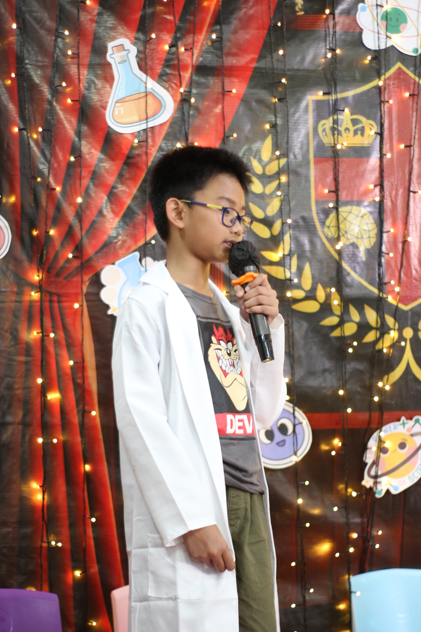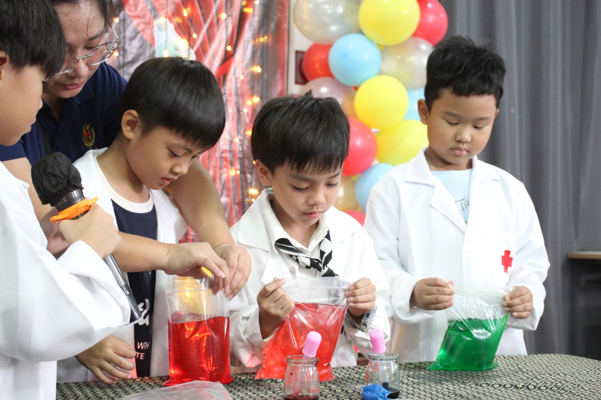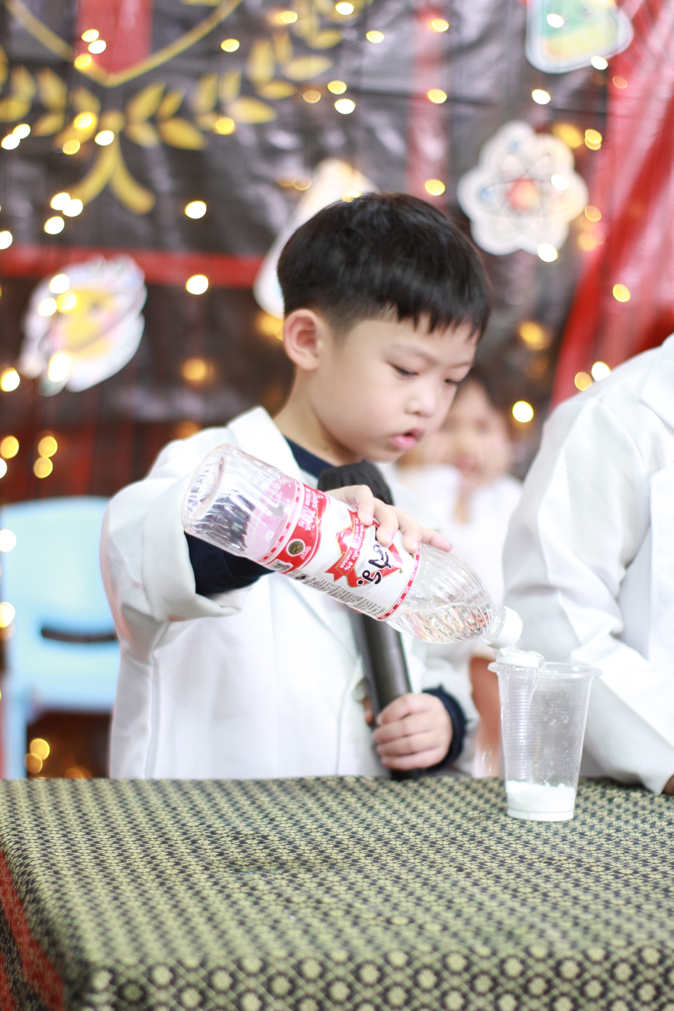 เหล่าเด็กๆ สวมเสื้อกาวน์ ใส่แว่นนักวิทยาศาสตร์เหมือนมืออาชีพตัวจิ๋ว พอทุกคนได้รวมตัวกันรทดลอง เสียงหัวเราะก็ดังขึ้นไม่หยุด