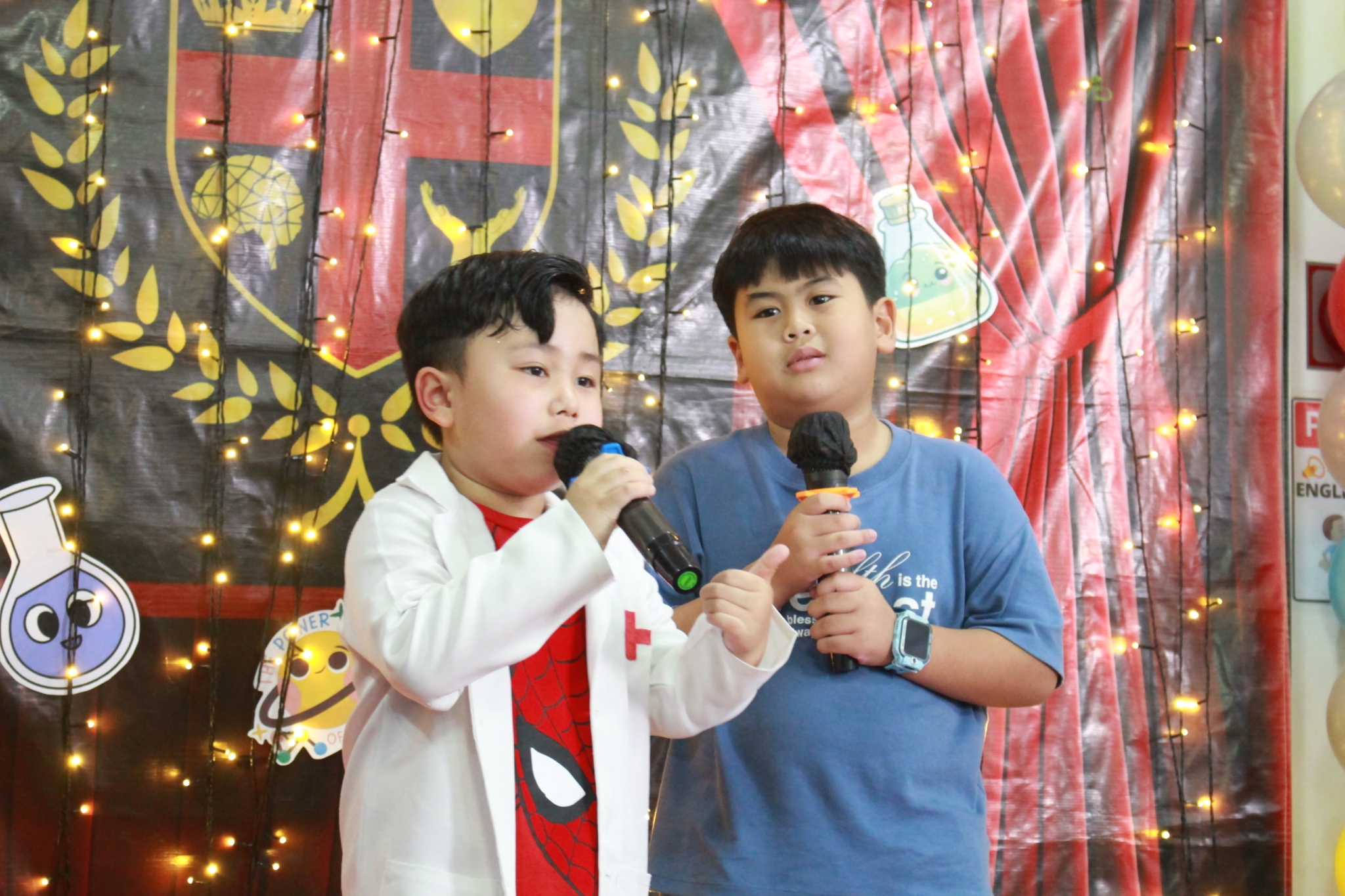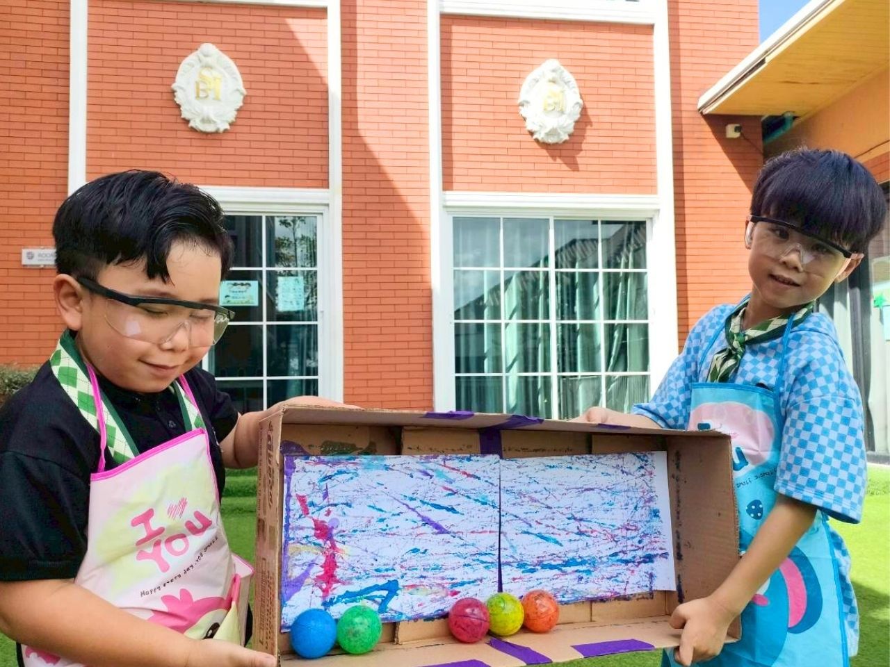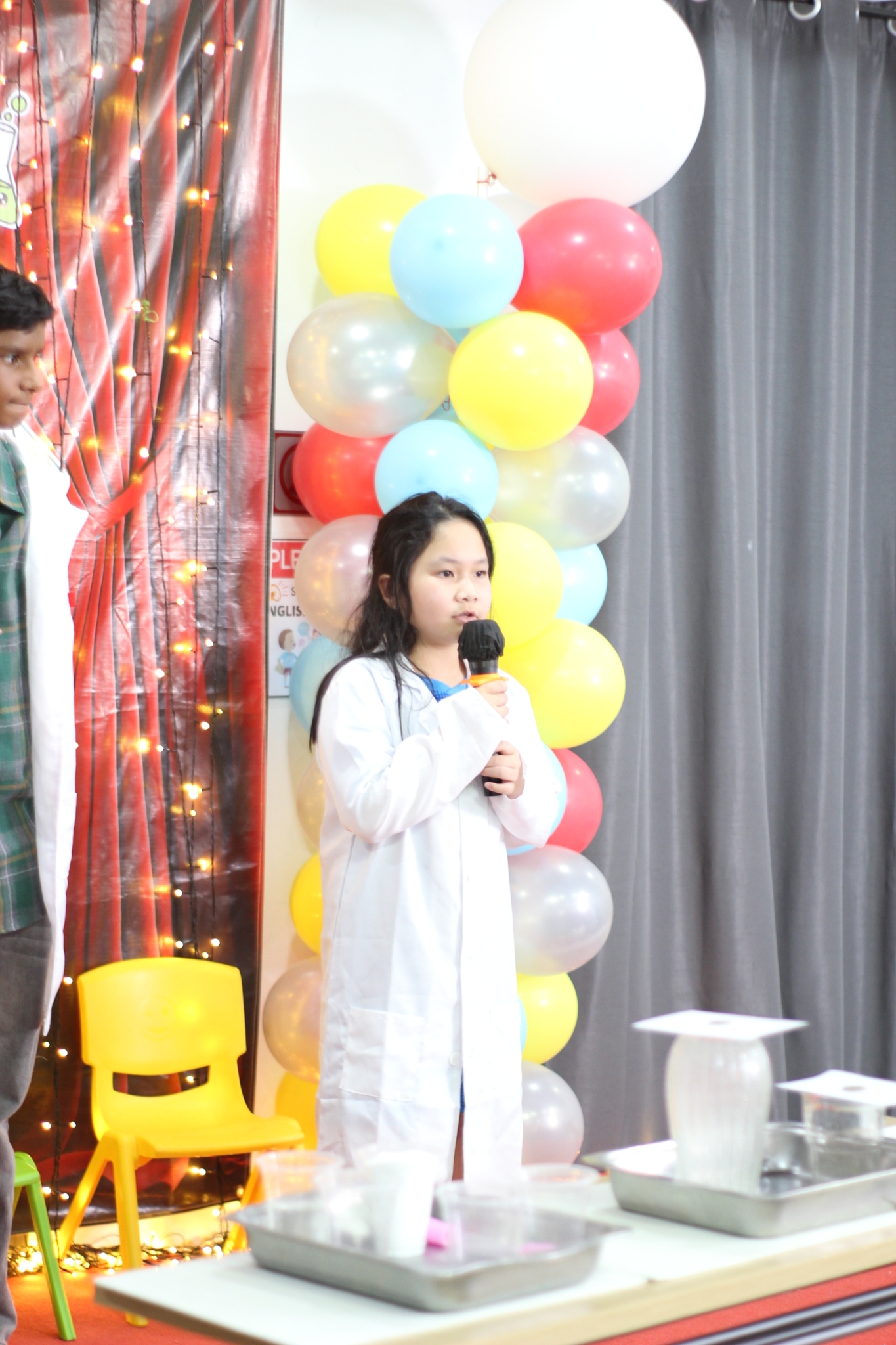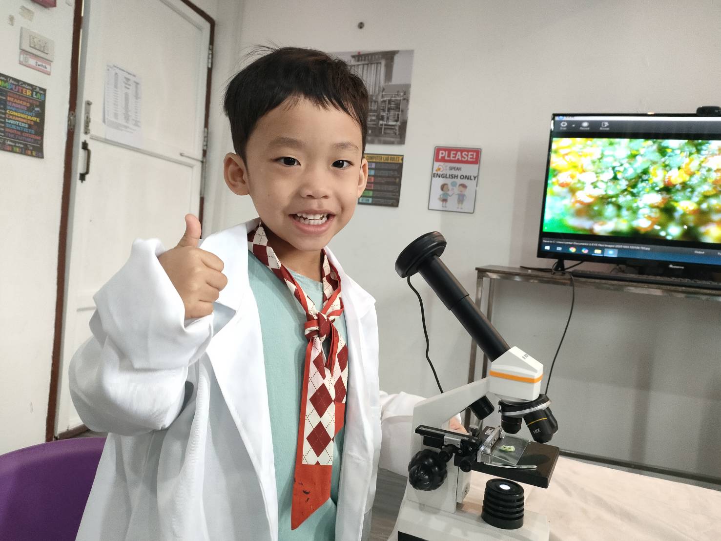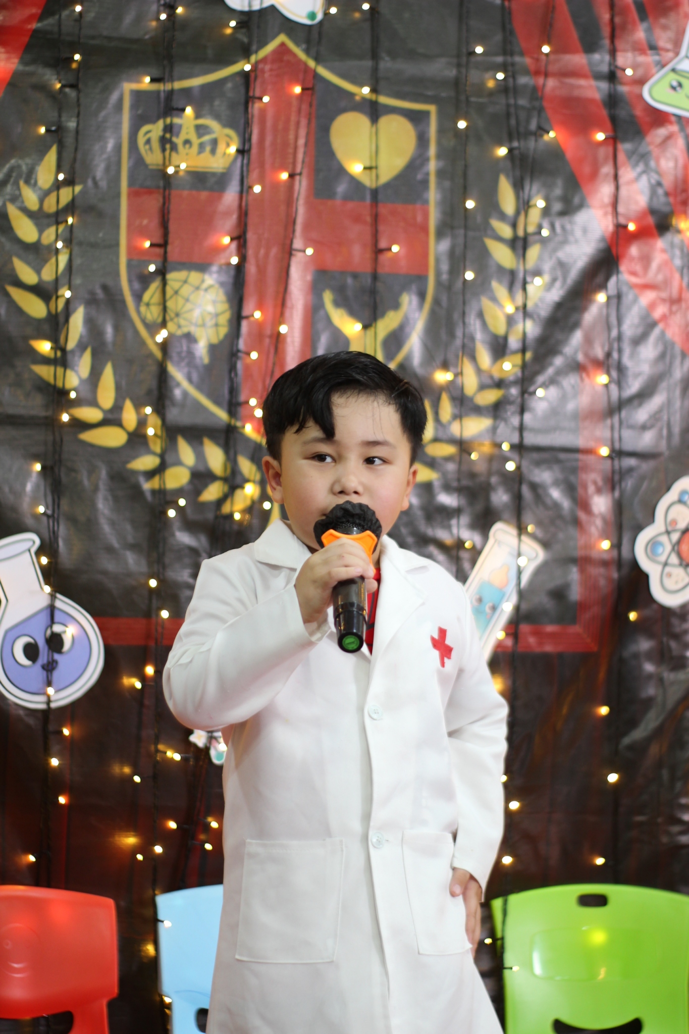 เหล่าเด็กๆ สวมเสื้อกาวน์ ใส่แว่นนักวิทยาศาสตร์เหมือนมืออาชีพตัวจิ๋ว พอทุกคนได้รวมตัวกันรทดลอง เสียงหัวเราะก็ดังขึ้นไม่หยุด