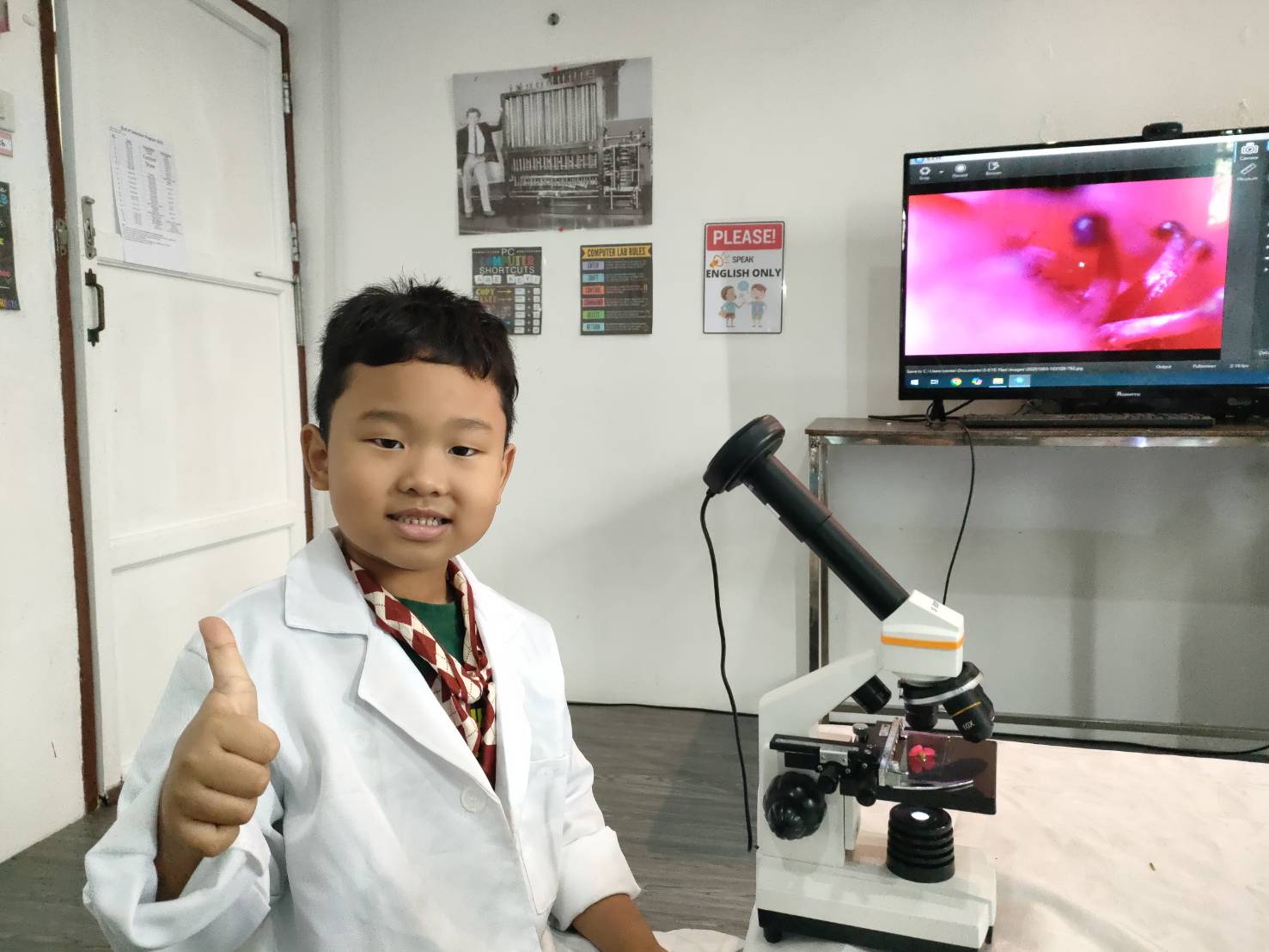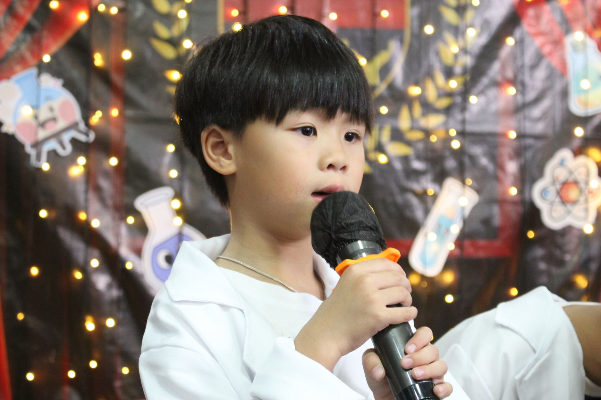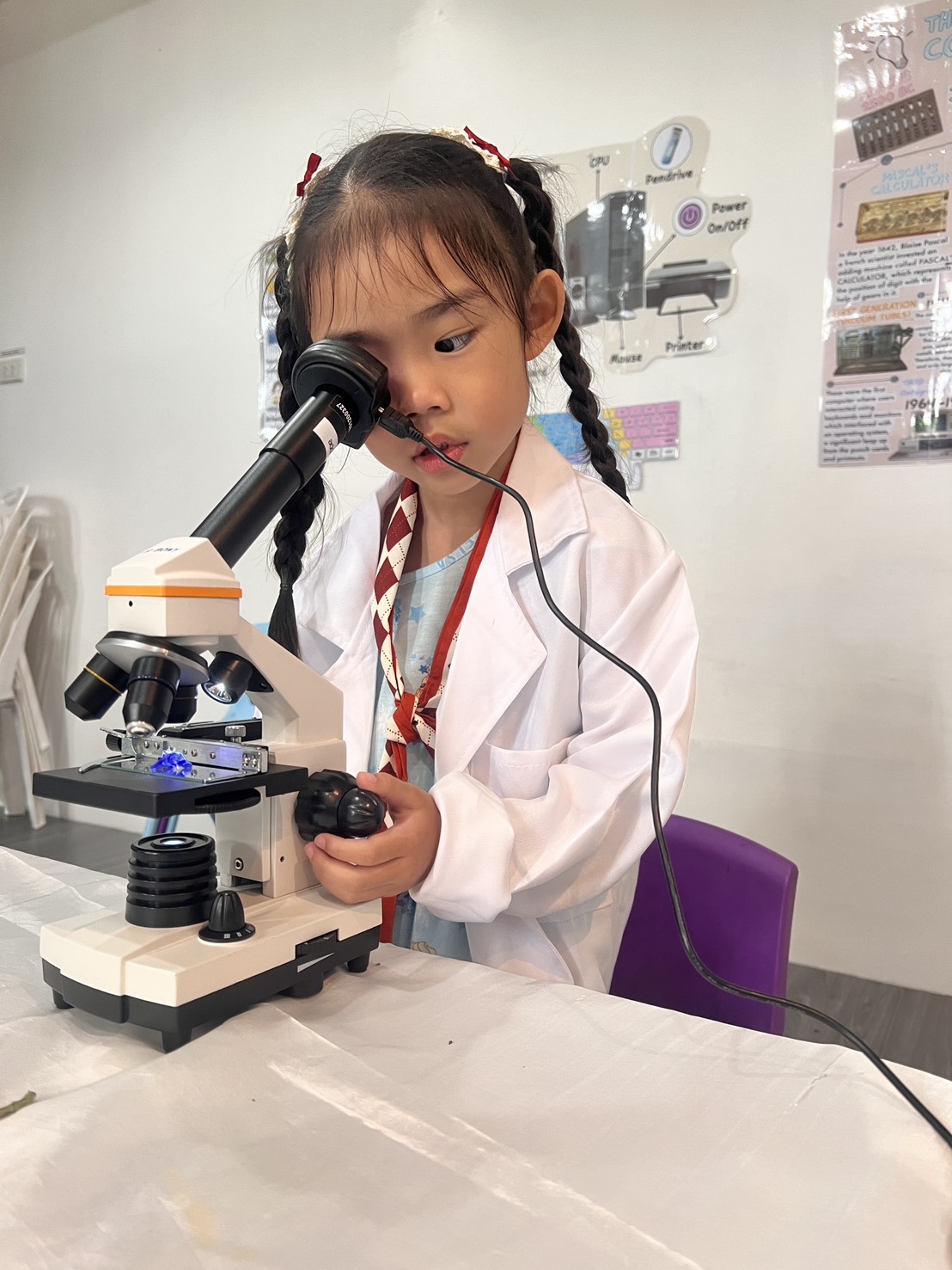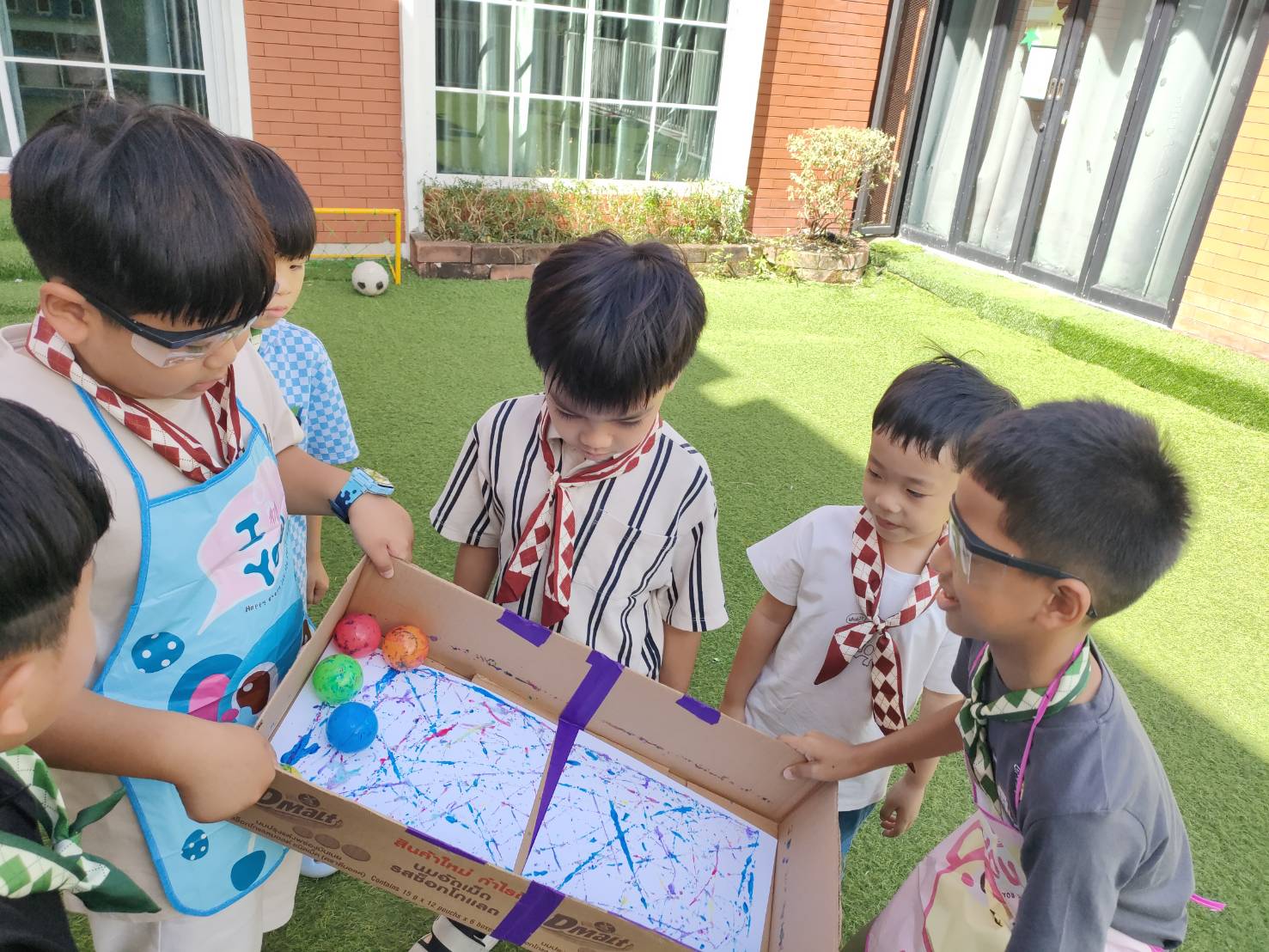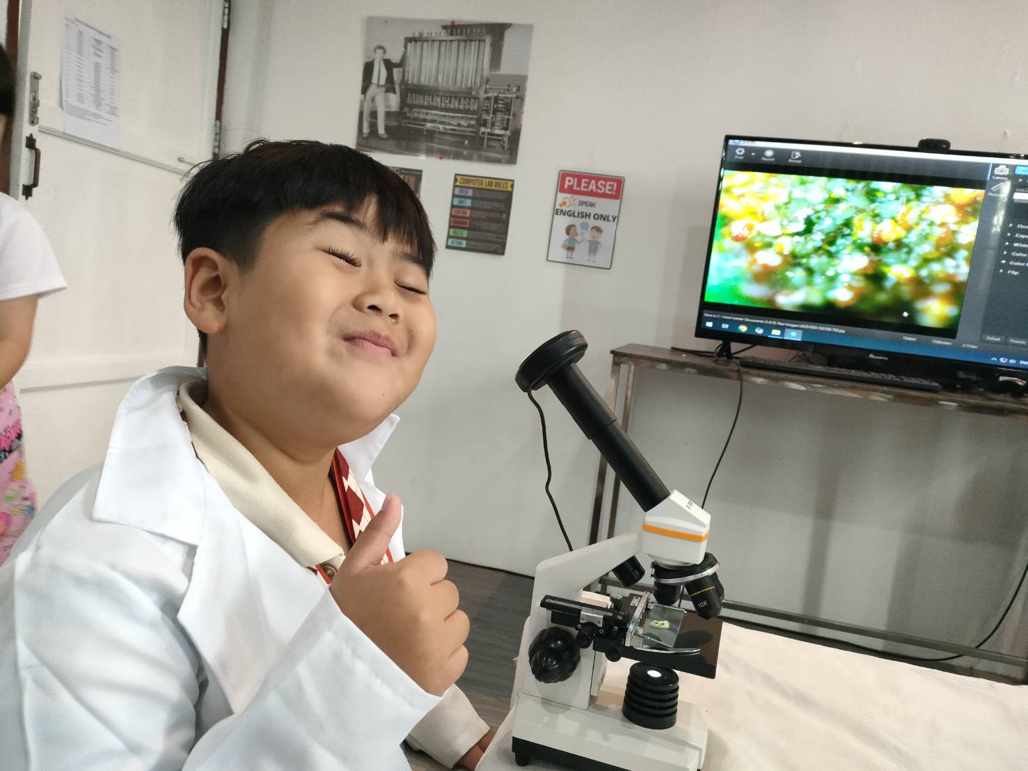 เหล่าเด็กๆ สวมเสื้อกาวน์ ใส่แว่นนักวิทยาศาสตร์เหมือนมืออาชีพตัวจิ๋ว พอทุกคนได้รวมตัวกันรทดลอง เสียงหัวเราะก็ดังขึ้นไม่หยุด