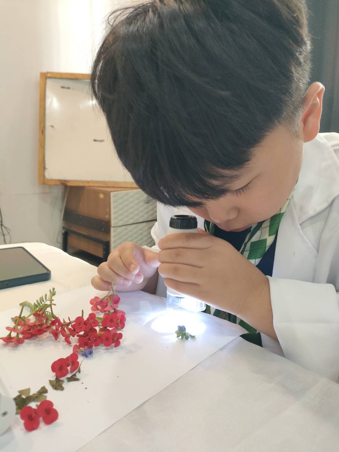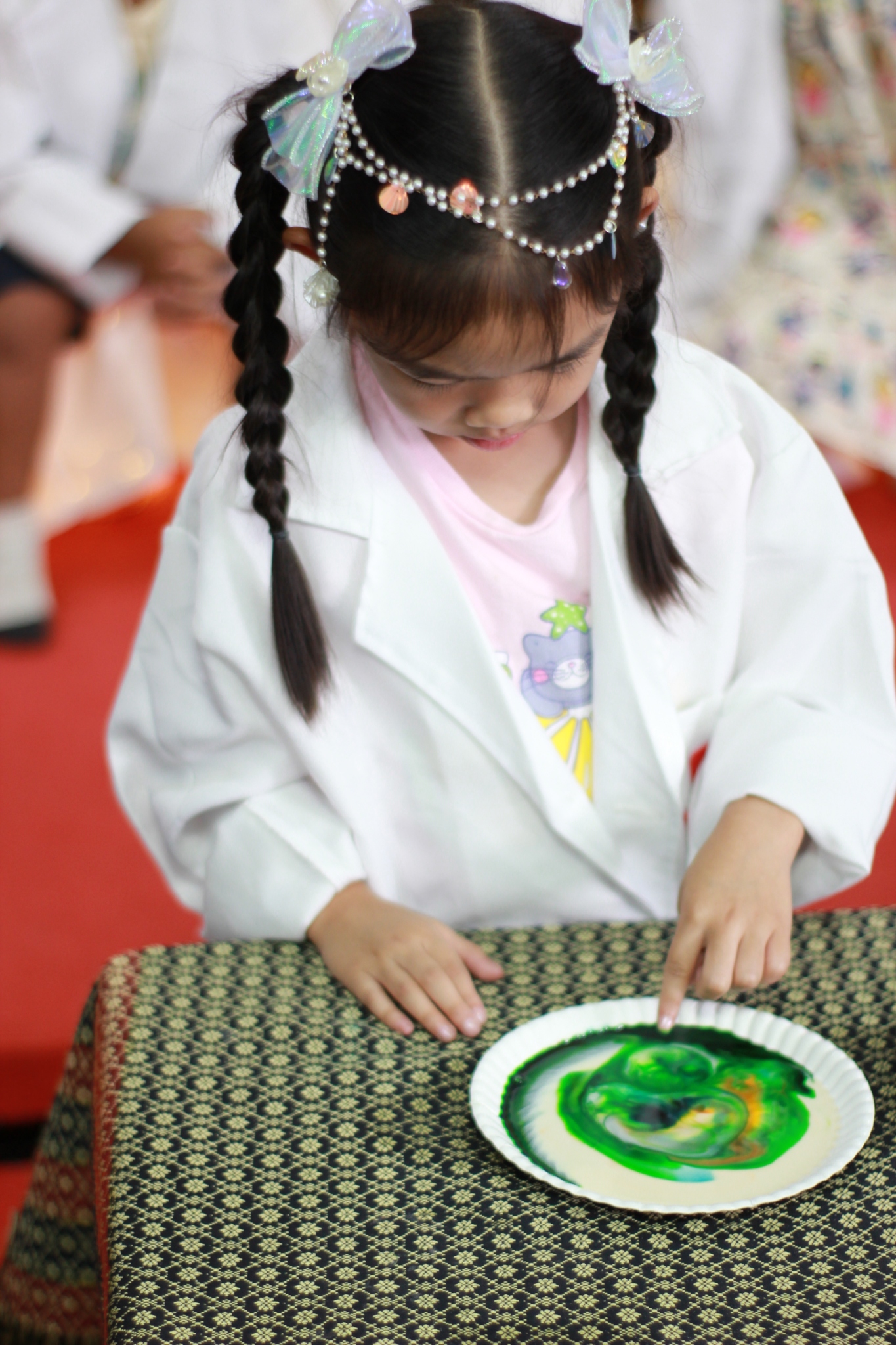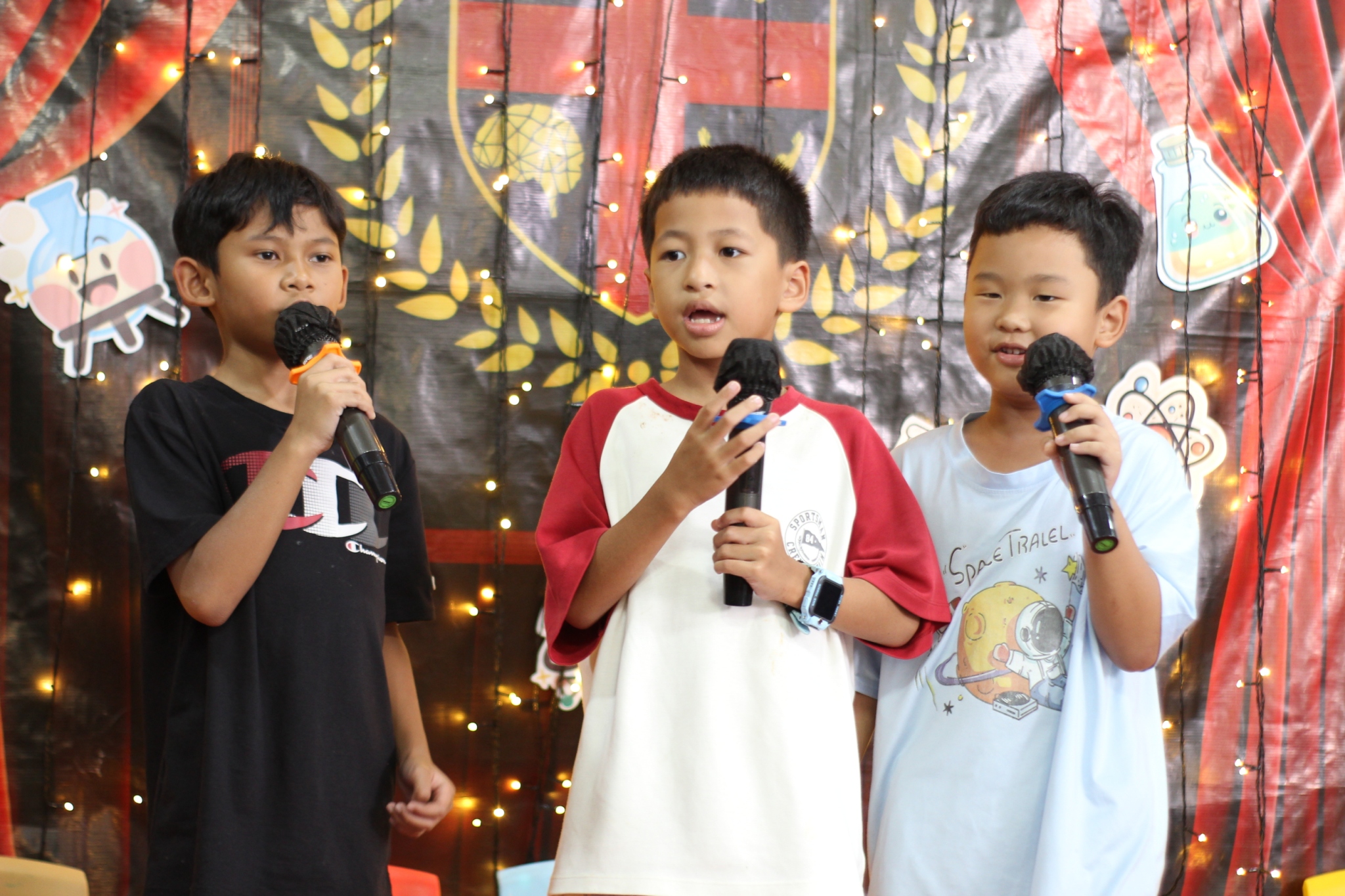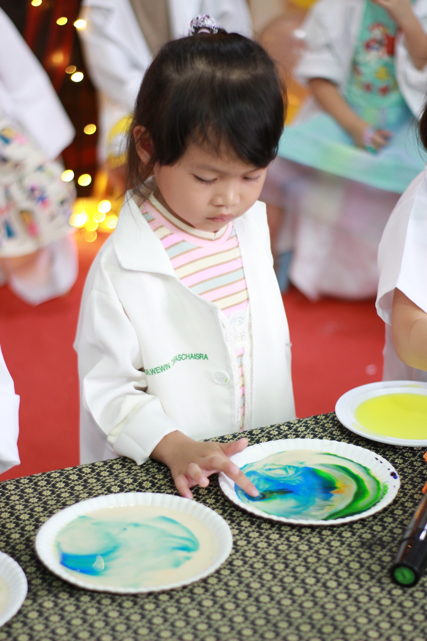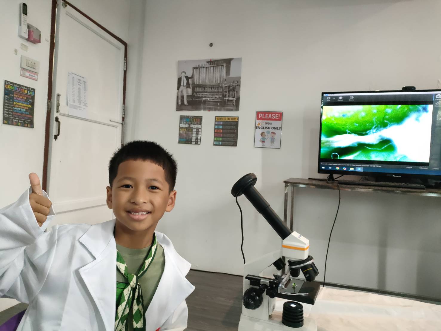 เหล่าเด็กๆ สวมเสื้อกาวน์ ใส่แว่นนักวิทยาศาสตร์เหมือนมืออาชีพตัวจิ๋ว พอทุกคนได้รวมตัวกันรทดลอง เสียงหัวเราะก็ดังขึ้นไม่หยุด